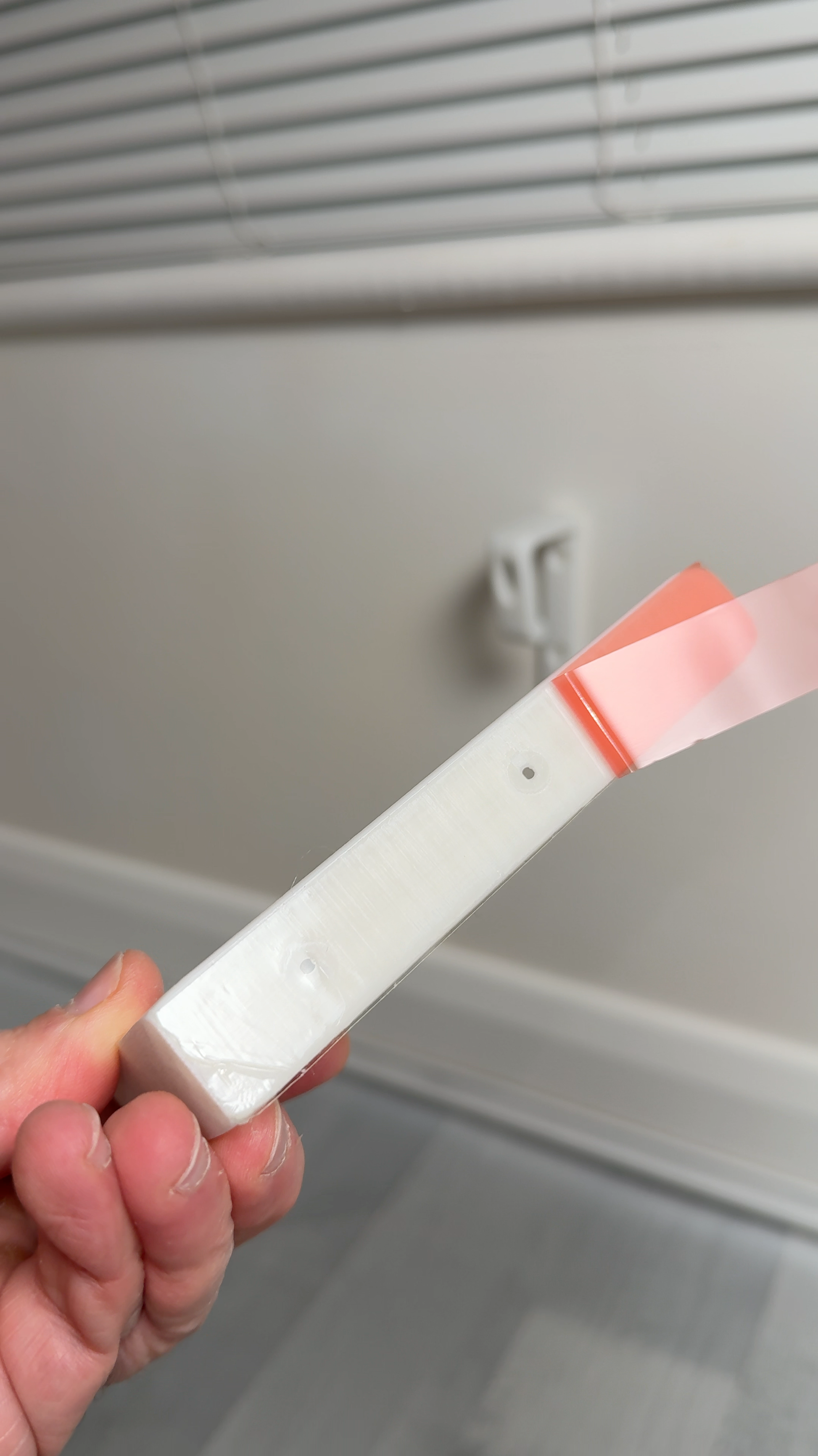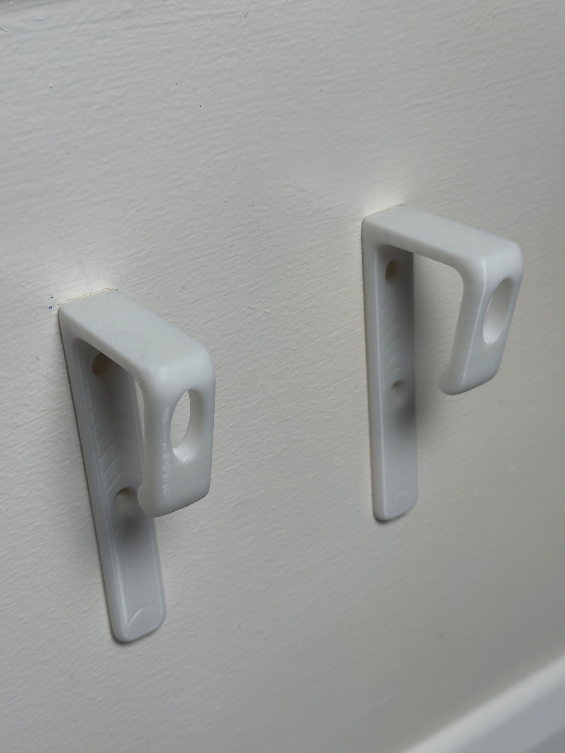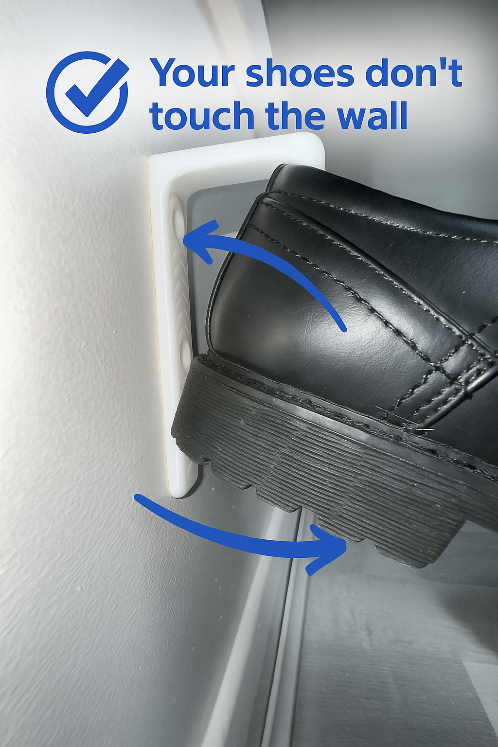 Strong and minimal wall shoe hook, 3D printed from durable plastic.